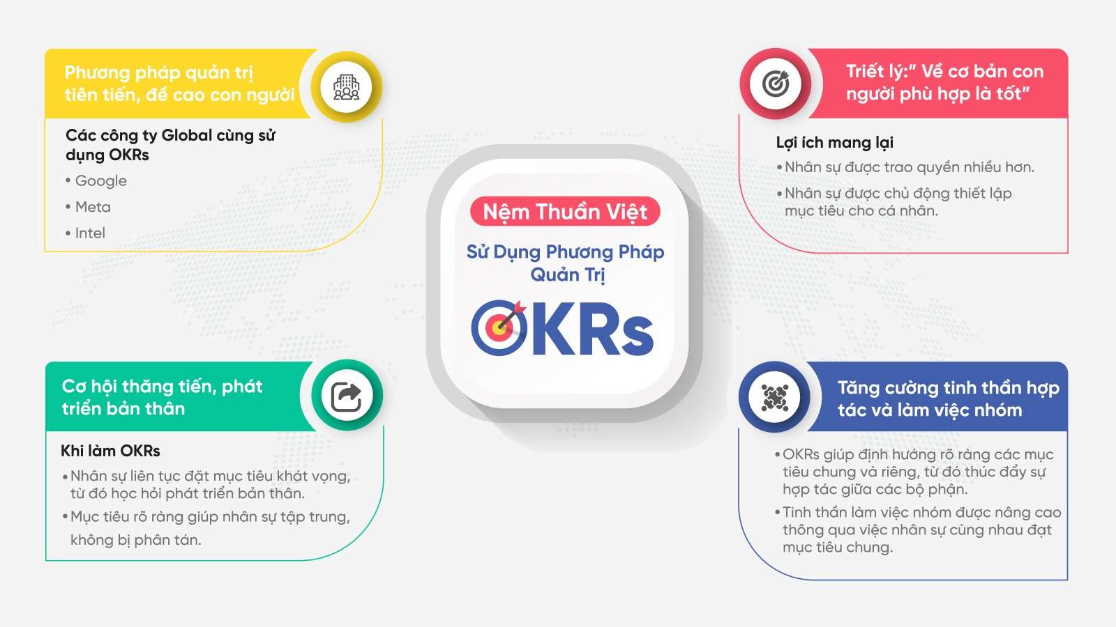 Áp dụng mô hình quản trị mục tiêu OKRs trong công việc, mang lại kết quả minh bạch.