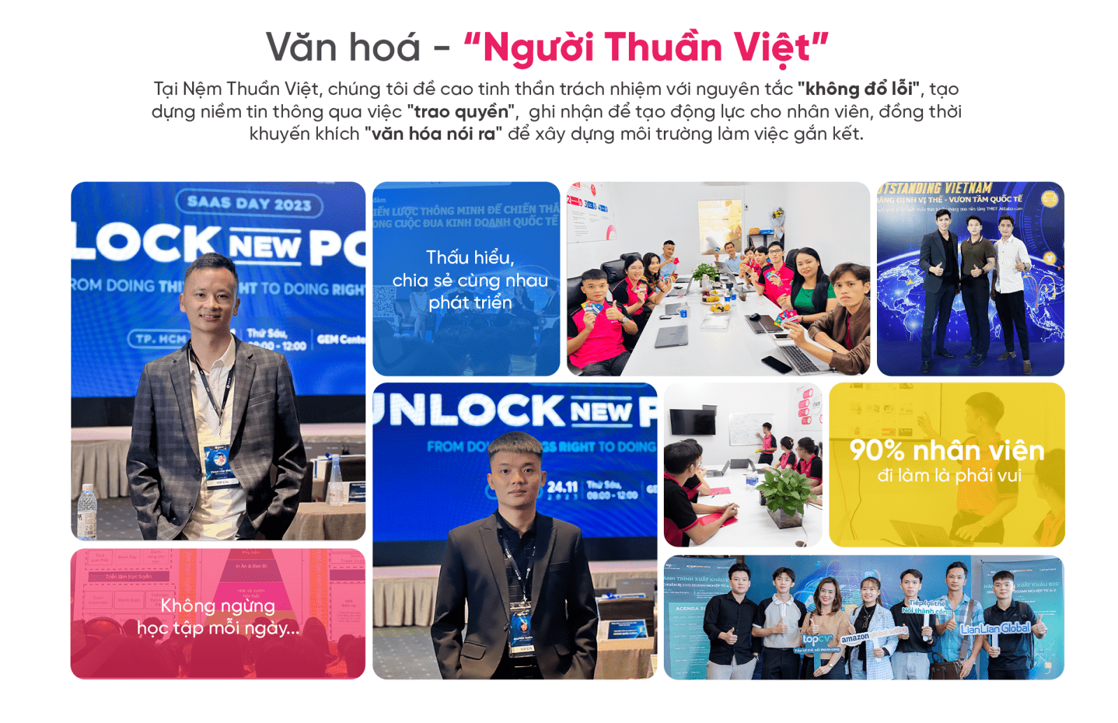 Chúng tôi khuyến khích tinh thần đổi mới - sáng tạo. Sẵn sàng tạo điều kiện để nhân sự được sai lầm, để học hỏi, để phát triển.
